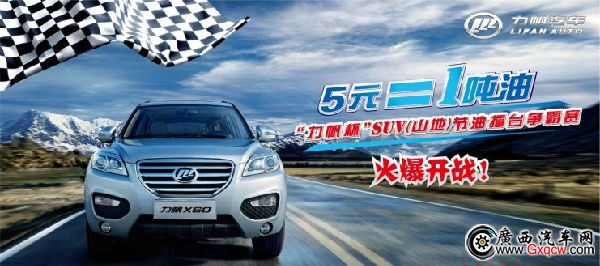 2) 力帆X60車主自備力帆X60汽車參賽;其他參賽人員可使用經(jīng)銷商提供的X60車輛參賽,也可以使用自己的車輛,但必須滿足活動(dòng)參賽車型要求;