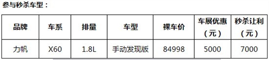 二、參與秒殺車型客戶須簽訂秒殺車型訂車協(xié)議,交納訂金10000元,到秒殺時間參加現(xiàn)場秒殺活動;
