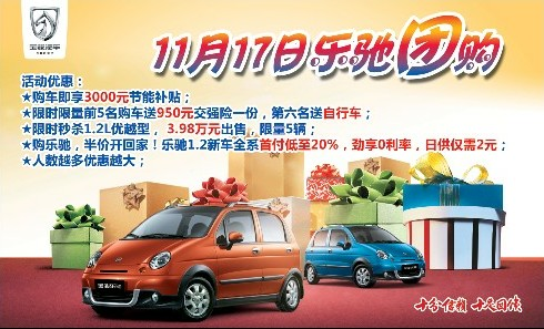 活動(dòng)招募喜愛樂馳的你到場參與,享受年終*優(yōu)惠的樂馳價(jià)格!活動(dòng)現(xiàn)場還有刺激你神經(jīng)的“2元購車”活動(dòng),簽到贈(zèng)送寶駿布偶一個(gè)!