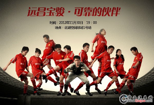 2012年11月30南寧遠昌寶駿車友VS南寧遠昌寶駿4S店“足球友誼賽”車友會活動即將開始,在此我們召集喜愛足球運動的寶駿車主們,你們在哪里?趕快集合起來,一齊到北湖空間球場,參加南寧**屆寶駿車主運動會吧!。