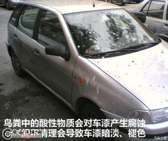 戶外停車(chē),尤其是停在樹(shù)底下,從天而降的鳥(niǎo)糞總是無(wú)法避免。千萬(wàn)不要小看那一坨鳥(niǎo)糞,鳥(niǎo)糞有著比較強(qiáng)的腐蝕性,如果掉到車(chē)上長(zhǎng)期不清理,輕則在車(chē)漆上留下難以除去的印記,重則有可能直接“咬掉”一塊漆。