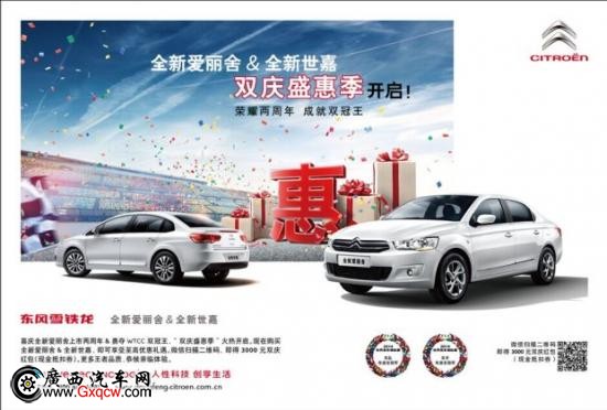 同時(shí),全新愛麗舍、全新世嘉還啟動(dòng)了 “榮耀兩周年 成就雙冠王”雙慶盛惠季感恩回饋消費(fèi)者行動(dòng),為廣大喜愛全新愛麗舍的用戶獻(xiàn)上驚喜大禮!凡是到店購買全新愛麗舍、全新世嘉的用戶,即可參與微信掃描二維碼活動(dòng),贏取3000元雙慶紅包。