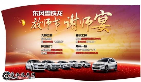 東風雪鐵龍廣西龍康4S店開啟“回饋師恩,教師節(jié)謝師宴”,神秘大禮大派送!