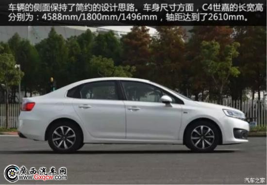 整體外觀方面,全新C4世嘉的設計非常簡潔有力,比較符合目前年輕人的審美,車身尺寸方面,C4世嘉的長寬高分別為:4588mm/1800mm/1496mm,軸距達到了2610mm。配置上,C4世嘉裝配了較為傳統(tǒng)的鹵素大燈,不過沒有配備透鏡。車輛帶有無鑰匙進入及一鍵啟動功能,還配有盲區(qū)監(jiān)控功能,尾部配有倒車影像及6顆駐車雷達。