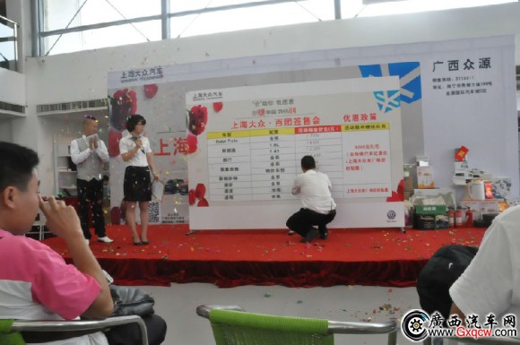 [導(dǎo)讀]上周末(5月16日), “價”給你,我愿意!你賺幸福,我給利——上海大眾百團簽售會在廣西眾源店如期舉行。本次活動共計吸引廣西區(qū)內(nèi)各地車友超過300余人前來參加,現(xiàn)場多達300臺現(xiàn)車推出前所未有的優(yōu)惠力度引爆全場。活動當天還為現(xiàn)場購車客戶準備了刺激又好玩的抓金環(huán)節(jié)、飛鏢奪寶環(huán)節(jié)、以及現(xiàn)場多輪幸運大抽獎環(huán)節(jié),活動從14:00正式開始,車友們紛紛趕在17:30政策回收前成功下訂,經(jīng)過三個多小時的激情熱賣,活動當天收獲大量新車訂單。