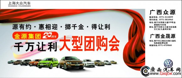 金源集團(tuán)——上海大眾品牌,廣西眾源金源汽車(chē)城店、廣西金晟源機(jī)場(chǎng)形象店雙店聯(lián)袂鉅獻(xiàn)。即日起交200抵1000,8月15日當(dāng)天14點(diǎn)前成功訂車(chē),更可參與一擲千金贏額外3000元優(yōu)惠。源有約.惠相迎.擲千金.得讓利。8月15日14:00,上海大眾全系優(yōu)惠價(jià)格正式公布,敬請(qǐng)期待!