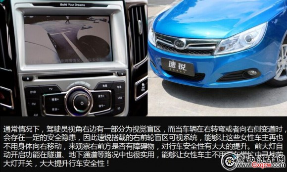 通常情況下,駕駛員視角右邊有一部分為視覺盲區(qū),而當(dāng)車輛在右轉(zhuǎn)彎或者向右側(cè)變道時(shí),會(huì)存在一定的安全隱患,因此速銳搭載的右前輪盲區(qū)可視系統(tǒng),能夠讓這些女性車主再也不用身體向右移動(dòng),來(lái)觀察右前方是否有障礙物,對(duì)行車安全性有大大的提升。此外,前大燈自動(dòng)開啟功能在隧道、地下通道等路況中也很實(shí)用,能夠讓女性車主不用再在慌忙中尋找前大燈開關(guān),大大提升行車安全性!