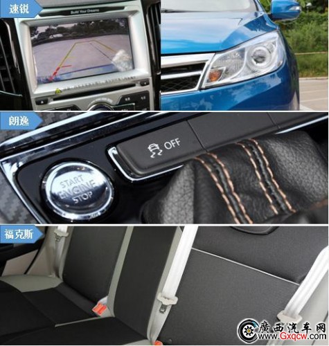 速銳延續(xù)了比亞迪家族高配風(fēng)格,全系標(biāo)配Keyless系統(tǒng)、全皮型多功能方向盤、自動(dòng)恒溫空調(diào)等人性化配置,而且GPS語(yǔ)音導(dǎo)航、車載電視/電話等實(shí)用配置也一應(yīng)俱全;朗逸標(biāo)配定速巡航、行車電腦顯示屏、多媒體系統(tǒng)、AUX/USB/iPod、8揚(yáng)聲器、大燈高度可調(diào)等,雖大體上可媲美速銳,但Keyless系統(tǒng)僅是選裝配置不免有些遺憾;而?怂箖H有電動(dòng)天窗、真皮方向盤、行車電腦顯示屏、外接音源接口、電動(dòng)后視鏡等常見配置,相比速銳遜色太多。