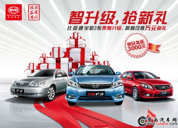 比亞迪3系車型煥然上市搭載全新動(dòng)力、全新配置、全新內(nèi)飾等多達(dá)18項(xiàng)升級(jí)為您帶來煥然一新的智高駕乘享受!