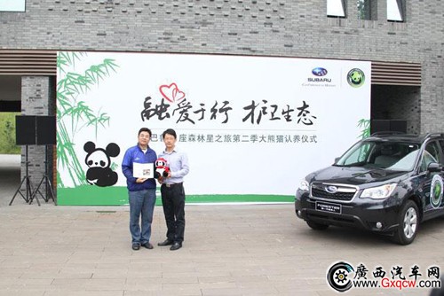 斯巴魯(中國)董事•副總經(jīng)理李金勇代表斯巴魯捐贈了一輛森林人并認(rèn)養(yǎng)了一只大熊貓
