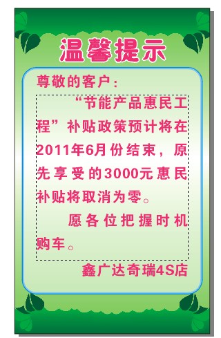 貴港鑫廣達奇瑞汽車公司提醒您: