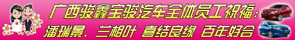 車隊非常出色的表現(xiàn),不僅使潘先生和蘭小姐的婚禮更加完美浪漫,終身難忘,更讓婚禮現(xiàn)場的參與人員都感受到寶駿車隊的溫馨和浪漫。廣西駿鑫寶駿汽車全體員工恭祝:潘先生和蘭小姐喜結(jié)良緣、百年好合!