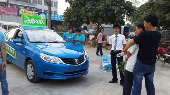 2013年10月10日,南寧市吳圩鎮(zhèn)客運(yùn)站和平藥業(yè)店面外,廣西駿鑫旗艦店寶駿汽車展示正在進(jìn)行。凡在活動(dòng)期間購寶駿汽車全系車型,均可享受本店超值優(yōu)惠,還有多重好禮相送。