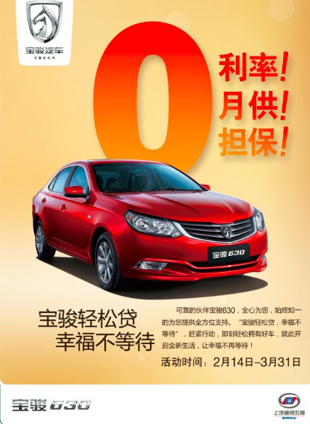 訂購(gòu)寶駿630贈(zèng)送4000元超值大禮包+送價(jià)值1500元三次免費(fèi)保養(yǎng)服務(wù),成交越多,“禮”越豐厚。 購(gòu)介紹新用戶成功購(gòu)買寶駿任一車型可獲價(jià)值500元保養(yǎng)代金券。