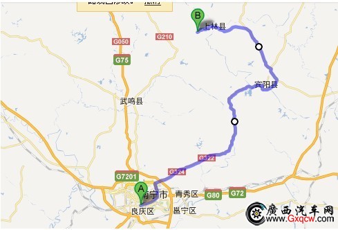 所經(jīng)線路:寶駿4S店(廣西駿鑫)―賓陽(yáng)―上林―下水源―南寧
