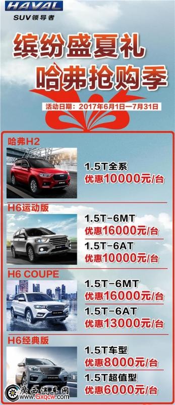 活動(dòng)車型——哈弗H6、哈弗H2、哈弗H7、哈弗H8、哈弗H1、哈弗H5、哈弗H6coupe、哈弗H2S等車型。