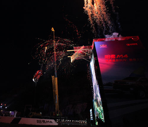 位于京郊四面環(huán)山、景色宜人的哈弗M4上市現(xiàn)場(chǎng),高高筑起的集裝箱與周圍嚴(yán)陣以待的重型設(shè)備已經(jīng)預(yù)示出這并不是一次尋常的上市發(fā)布會(huì)。就在現(xiàn)場(chǎng)氣氛即將被神秘和好奇推向頂點(diǎn)時(shí),哈弗M4以最為出人意料的方式登場(chǎng),在現(xiàn)場(chǎng)近百名嘉賓的見證下,從20.8米的高空,干凈利索地完成了驚世一躍,完成神州**蹦,驚艷上市。