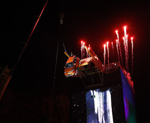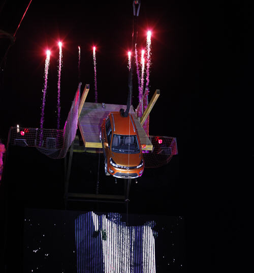 位于京郊四面環(huán)山、景色宜人的哈弗M4上市現(xiàn)場(chǎng),高高筑起的集裝箱與周圍嚴(yán)陣以待的重型設(shè)備已經(jīng)預(yù)示出這并不是一次尋常的上市發(fā)布會(huì)。就在現(xiàn)場(chǎng)氣氛即將被神秘和好奇推向頂點(diǎn)時(shí),哈弗M4以最為出人意料的方式登場(chǎng),在現(xiàn)場(chǎng)近百名嘉賓的見(jiàn)證下,從20.8米的高空,干凈利索地完成了驚世一躍,完成神州**蹦,驚艷上市。