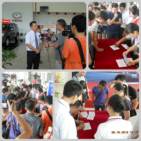 長(zhǎng)城哈弗M4廣西南寧品鑒試駕會(huì)暨首批客戶集體交車(chē)儀式,于6月10日早10點(diǎn)在廣西長(zhǎng)道安吉4S店舉辦,活動(dòng)現(xiàn)場(chǎng),驚喜連連,活動(dòng)當(dāng)天到店的客戶不僅能享受總經(jīng)理特價(jià)簽售。還能現(xiàn)場(chǎng)抽大獎(jiǎng)。硬派迷你SUV哈弗M4自上市以來(lái)。受到很多車(chē)友的關(guān)注,品鑒試駕活動(dòng)環(huán)節(jié),更是受到很多到店客戶的歡迎?蛻粲^看哈弗M4高空蹦極的“極限”表演后,對(duì)長(zhǎng)城哈弗M4刮目相看。預(yù)訂形勢(shì)持續(xù)火爆。