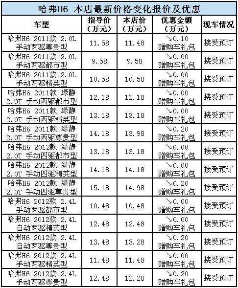 哈弗H6搭載了三菱2.0L汽油動力,技術(shù)成熟、性能穩(wěn)定,使用成本低,完全適合城市生活的駕馭需要;同時,還可搭載綠靜2.0T柴油機,這款動力擁有技術(shù)先進、節(jié)能環(huán)保的特征,是目前國內(nèi)**的柴油動力之一。同時,哈弗H6超長保修5年或10萬公里,4次免費保養(yǎng)政策,樹立了行業(yè)服務(wù)新標(biāo)桿。