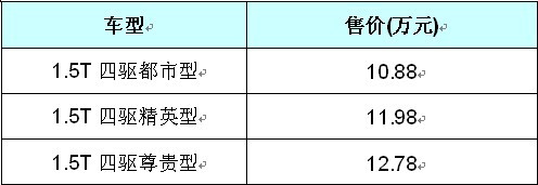 哈弗H61.5T汽油四驅(qū)已上市在售,共都市型、精英型、尊貴型三款車型,售價(jià)分別為10.88萬元、11.98萬元、12.78萬元。