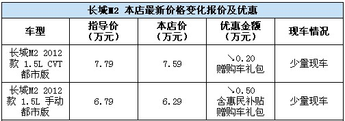 廣西長(zhǎng)道店內(nèi)長(zhǎng)城M2享3000元節(jié)能補(bǔ)貼,更有豪華禮包。【以上所有優(yōu)惠內(nèi)容僅限預(yù)訂客戶享受】。感興趣的朋友可以到店咨詢或致電咨詢!緩V西長(zhǎng)道:0771-2330301 (安吉4S店)0771-5780390(白沙4S店)0771-3922501(安吉直營(yíng)店) 】