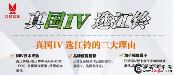 達(dá)標(biāo)國IV有四個要素:一是提高發(fā)動機(jī)燃燒效率(高壓共軌),二是提高氧氣利用率(增壓中冷),三是減少廢棄氮氧化合物含量(EGR系統(tǒng)),四是有針對性的降低有害氣、固體排放(DOC+POC或者SCR)。相比需要頻繁更換尿素的SCR系統(tǒng),江鈴輕卡采用的DOC+POC后處理技術(shù),只需廠家一次性安裝,無需添加尿素,輕巧便捷,使用成本更低。