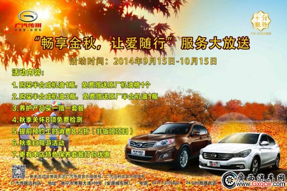 “暢享金秋,讓愛隨行”,廣汽傳祺南寧迅利店為你準備更多貼心更多呵護喔!