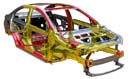 正如我們開篇提到的,消費者大多數(shù)在換車時首先看重的是車輛的安全性,在這一點上愛唯歐三廂表現(xiàn)如何呢?先看看針對安全的配置,愛唯歐三廂全車采用了高達(dá)64%的高強度鋼,整個BFI車架為一體化沖壓鋼結(jié)構(gòu),確保了整車具備了小型車中少有的高剛性車身。其中,高強度鋼材多為980MPa強度,A柱、B柱等重點部位還使用了超高強度鋼材。