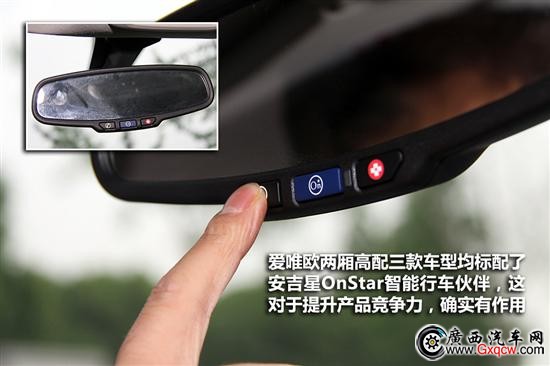 首次引入愛唯歐這款小車上的安吉星OnStar智能行車伙伴確實很吸引,在1.4L SE AT和1.6L SX共三款車型上標(biāo)配,并能在選擇1.4L SE MT車型時選裝。就成本而言,粗略估算這套系統(tǒng)在愛唯歐中所占的比例大概為2000元,我覺得這樣的成本算是比較厚道了,如果預(yù)算夠的話,盡量選擇這項配置對于日后用車還是會帶來不錯的便利性的(尤其建議女性車主選購)。