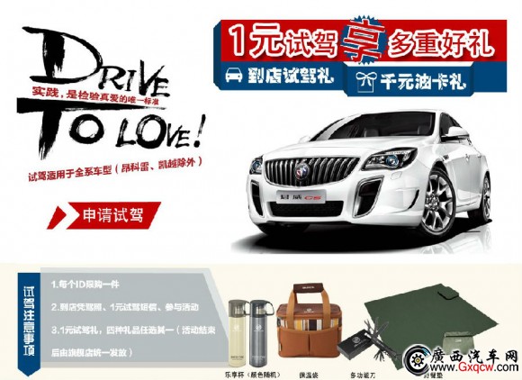 為更好的讓客戶體驗(yàn)別克全系車型,別克全國(guó)經(jīng)銷商與天貓合作,4月份在別克天貓旗艦店開展“1元試駕”活動(dòng),只要您在別克天貓旗艦店購買“1元試駕寶貝”即可尊享別克全系車型試駕體驗(yàn)外,還可獲得由別克天貓旗艦店送出的禮品(休閑野餐墊、多功能戶外組合工具、別克關(guān)懷傘、馬克杯等四選一)不要猶豫啦,上網(wǎng)打開別克天貓旗艦店手指點(diǎn)一點(diǎn)即可參與。
