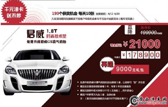 (5) 該車型在別克天貓旗艦店下單即可參與千元油卡抽獎(jiǎng)活動(dòng),僅限190個(gè)名額。
