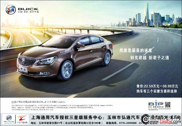 玉林弘通別克在2014年5月1-30日,為回饋關(guān)注全新君越的廣大車友朋友,推出“優(yōu)惠升艙”全新君越客戶升級(jí)計(jì)劃,即日起任意品牌置換全新君越除了享受新車優(yōu)惠外還可享受置換補(bǔ)貼基金,正準(zhǔn)備置換新車的朋友抓住機(jī)會(huì)啦!詳詢玉林弘通別克4S店:0775-2295666