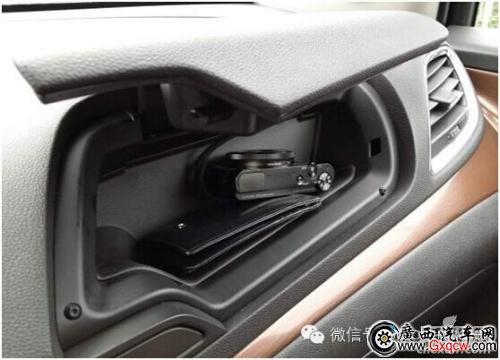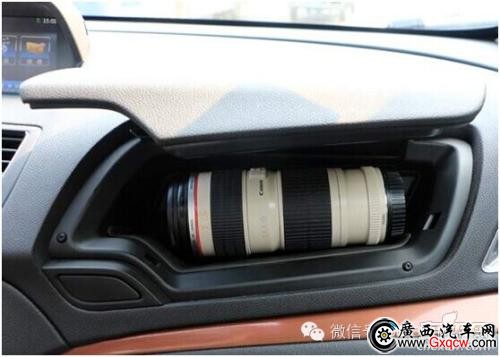 昂科拉的雙層手套箱我也非常喜歡,下層用來放常規(guī)東西,如行車資料、保養(yǎng)手冊等;上層我通常會把它騰空,如果是短暫停車辦事,我可以把不需要隨身攜帶的貴重東西例如小相機、錢包放進這個儲物箱,關(guān)好蓋子就“財不露眼”,相當(dāng)安全。這地方有多大?足以容納一支佳能“小小白”長鏡頭……