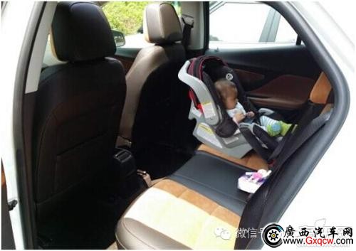 儲物便利性關(guān)乎年輕人單獨用車時的體驗,下面來說說年輕家庭——有了小孩之后出門的表現(xiàn)。 昂科拉的后排座椅可以穩(wěn)妥地固定兒童座椅,這不足為奇,絕大部分車都能做到。但它的后座寬度,是足夠放下一個兒童座椅后再坐上兩名成年人的,因為座椅坐墊比較平,地臺突起也不高,坐在旁邊的兩個成年人還可以自由分配寬度,贊的是還有三點式安全帶,彈的是中間位置沒有頭枕。我自己就試過讓老婆開車,我坐在后座中央位置上哄小孩,一路上坐得一點也不難受。阿聰?shù)男『?歲多,使用的二階段兒童座椅比我的大,但放上去同樣妥當(dāng),旁邊依然能坐2名成年人。上面這個發(fā)現(xiàn)這意味著昂科拉可以做到小家庭一家三口再攜兩老出行,盡享天倫之樂。