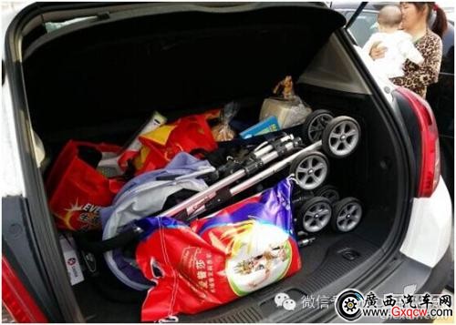 尾廂的常規(guī)容積可能跟較大的三廂轎車差不了多少,但SUV的好處是開口大、尾廂空間方方正正,例如圖中我的折疊嬰兒車,放進轎車尾廂只能平放,占用很大面積,上面有不能壓太重的東西(怕壓壞);而在昂科拉上我可以把它橫立起來,節(jié)約出來的尾廂空間還能應(yīng)付家庭周末大shopping的需要。作為一部日常開起來小巧靈活的車子,這樣的家用功能性已經(jīng)很說得過去了。