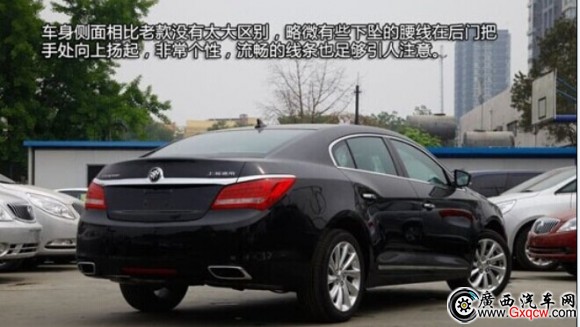 別克新君越在外型上的主要變化包括標(biāo)志性的直瀑式格柵的面積有所增大,頭燈的造型有所調(diào)整并且在燈眉處加入了像回旋鏢式的展翼LED日間行車燈組的模塊,與車尾的展翼式LED尾燈遙相呼應(yīng),非常搶眼。此外,在前保險杠的部分,也較現(xiàn)款有所調(diào)整,整個前臉風(fēng)格更為犀利。車身尾部,新款君越的顯著變化除了新增的展翼式尾燈設(shè)計(jì),雙出尾管的造型也略有調(diào)整,排氣包覆在了后保險杠之內(nèi),與車身形成一體。此外,尾部還加入了貫穿兩個尾燈的鍍鉻亮條,更顯大氣,新車在牌照架樣式上也有細(xì)微調(diào)整。