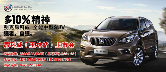 昂科威(玉林站)上市會時間:2014年10月24日晚上20:00