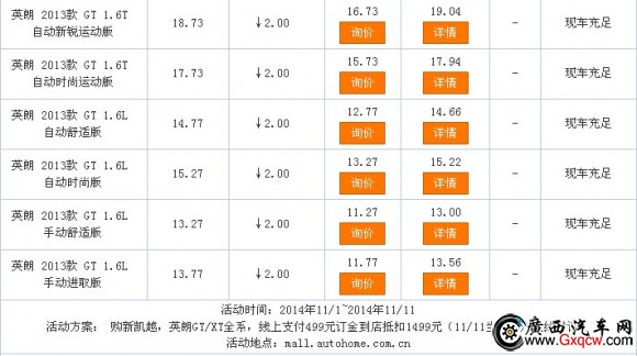 近日,玉林弘通汽車店內(nèi)英朗現(xiàn)車銷售,顏色可選,目前購車部分車型可優(yōu)惠2萬元,感興趣的朋友可以到店咨詢購買,詳情見下表:如此低價僅限11月8—11日。詳詢玉林弘通別克0775-2295666。(1)雙11超級鉅惠:凱越秒殺:*低價格直逼7萬起售,每天僅特供一臺。英朗GT秒殺:*低價格為10.99萬,限量供應(yīng)。(2)雙11超級金融:英朗XT和英朗GT*高可貸8萬享12期0利率。昂科拉和君威貸款6萬享18期0利率。君越貸款8萬享18期0利率。(3)雙11超級置換:“攜手換”別克大中小型SUV,不限品牌不限車型置換昂科雷、昂科威和昂科拉都可享受現(xiàn)金置換補貼。(4)雙11超級同享:老客戶成功推薦新客戶購車,都可享受200-500元不等的會員卡儲值金。