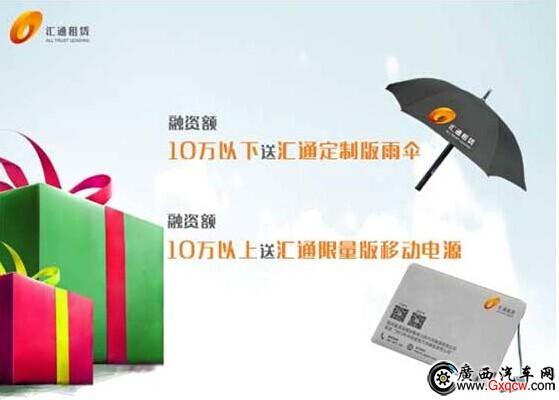 為了感恩回饋廣大客戶,匯通租賃(原廣匯租賃)傾情推出“匯購有禮,相約冬日”冬季感恩雙重禮遇活動。2014年12月1日—2014年12月31日活動期間,凡前往匯通信誠500余家4S店和綜合展廳、200余家二手車經(jīng)銷商商戶成功分期購車的客戶,可獲得由匯通信誠送出的限量版移動電源或定制版晴雨傘,這個冬天,我們和你一起相伴溫暖到底。詳情請咨詢:0775-2295666.