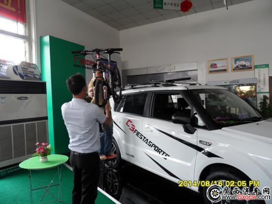 自行車專用架槽、固定架撐、固定繩都是行李架自帶。經(jīng)過這簡單三步,一輛山地自行車就穩(wěn)穩(wěn)的固定在車頂上了。以C3的寬車身設(shè)計(jì),可以放置2-3輛山地車。