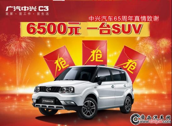 二、未參加中興汽車65周年慶搶車活動但是在活動期間到南寧駿鴻達參加團購會的客戶:我們贈送6500元大禮包;