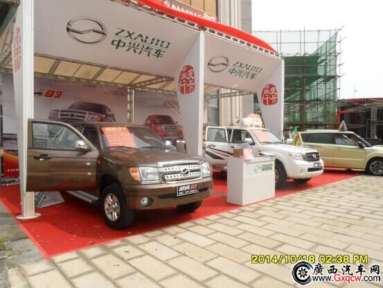 2014(第三屆)皮卡中國行暨SUV跨界巡展梧州站將于2014年10月25-26日在梧州市麗港舉行,中興汽車將攜旗下中興皮卡及廣汽中興C3兩大系列參加此次皮卡界峰會。 中興威虎G3包牌價(jià)80800元,再送五重大禮!現(xiàn)場訂、購中興汽車即有機(jī)會贏取Ipad及洗衣機(jī),參加活動即可贏取精美禮品!歡迎感興趣的朋友到現(xiàn)場咨詢!歡迎感興趣的朋友到現(xiàn)場咨詢!