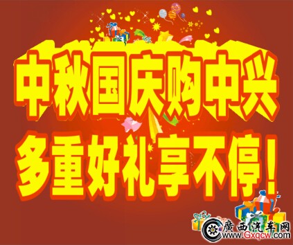 中秋節(jié)、國(guó)慶節(jié)將至,為答謝廣大消費(fèi)者對(duì)中興汽車及南寧駿鴻達(dá)的支持與厚愛(ài),特制定多重好禮的促銷活動(dòng)。9月26日起,只要進(jìn)店即可享受: