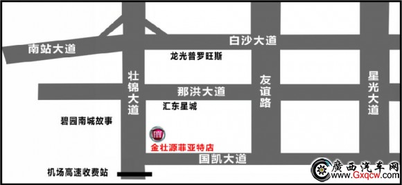 4S店地址:南寧市壯錦大道與國(guó)凱大道交匯處(機(jī)場(chǎng)那洪收費(fèi)站旁)