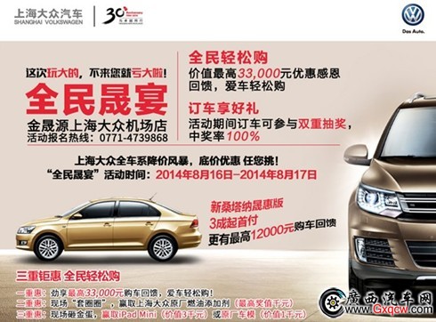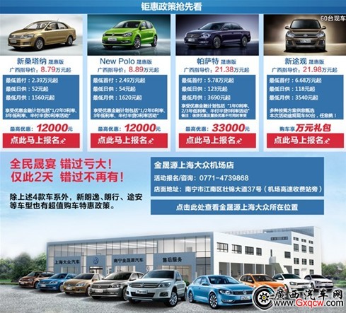 8月16日-8月17日,金晟源上海大眾機場店舉行“上海大眾全民晟宴”活動,全場*高達3.3萬元。