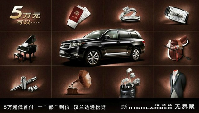 20%極低首付產(chǎn)品由豐田金融提供,以248,800元的車為例,首付僅為49760元,期限為12-60個(gè)月,換句話說只需5萬元首付即可“貸”走大漢;而由廣汽匯理提供的5-1-5產(chǎn)品極低日供期限為12個(gè)月,極低日供更可低至40元。一“部”到位金融活動(dòng)在短期內(nèi)減輕了客戶購車資金的壓力,被盤活的資金就可用作其他投資。