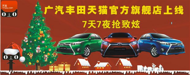12月24日,廣汽豐田攜今年主打新車致炫YARiS L正式進(jìn)駐天貓商城,其官方旗艦店于當(dāng)天零點(diǎn)正式上線,成為在華試水電商的**日系車企。廣汽豐田官方旗艦店給顧客提供了在線訂購和經(jīng)銷商查詢等功能,讓顧客可以在網(wǎng)上查詢相關(guān)商品信息和查找就近的經(jīng)銷商。(詳情請點(diǎn)擊http://toyota.tmall.com/)