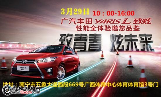 “致青春炫未來” 3月29日10:00-16:00,廣汽豐田YARiS L致炫性能全體驗邀您品鑒!致炫性能全體驗活動誠邀您的加入,讓您重新感受高品質(zhì)的駕駛體驗,超舒適的乘坐感受。購車更有1年“0”利息等你來,首付1.4萬元,即可擁有,還等什么?