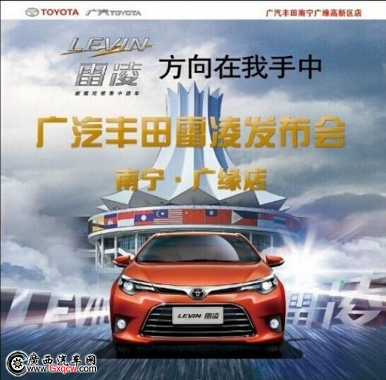雷凌閃電來襲,中級車市場迎來顛覆時代!8月24日,雷凌將在廣汽豐田廣西**店-南寧廣緣店隆重發(fā)布!到店即可與雷凌零距離接觸,360度全方位真實感受雷凌帶來的無限動感。